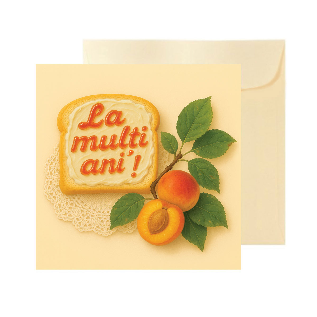Un toast dulce, cu gem de caise și multă voie bună! Această felicitare este perfectă pentru a